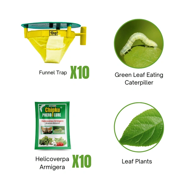 Protect your leafy greens and crops from Helicoverpa Armigera caterpillars with the Green Leaf Eating Caterpillar (Leaf Plants) Lure and Funnel Trap. Reclaim your garden's vitality – order now and fortify your plants against these voracious pests!
