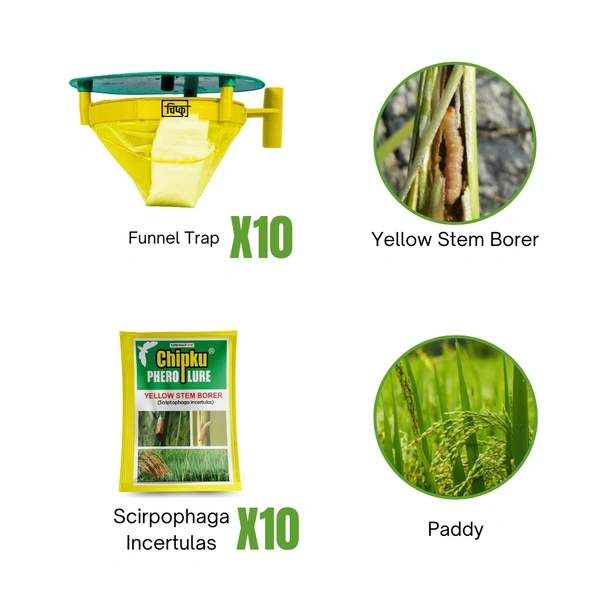 Shield your precious paddy crops from the relentless threat of Yellow Stem Borer with our Yellow Stem Borer (Paddy) Lure and Funnel Trap. Specially designed to combat Scirpophaga incertulas infestations, this highly effective pest control solution is an essential tool for paddy farmers determined to protect their yields.